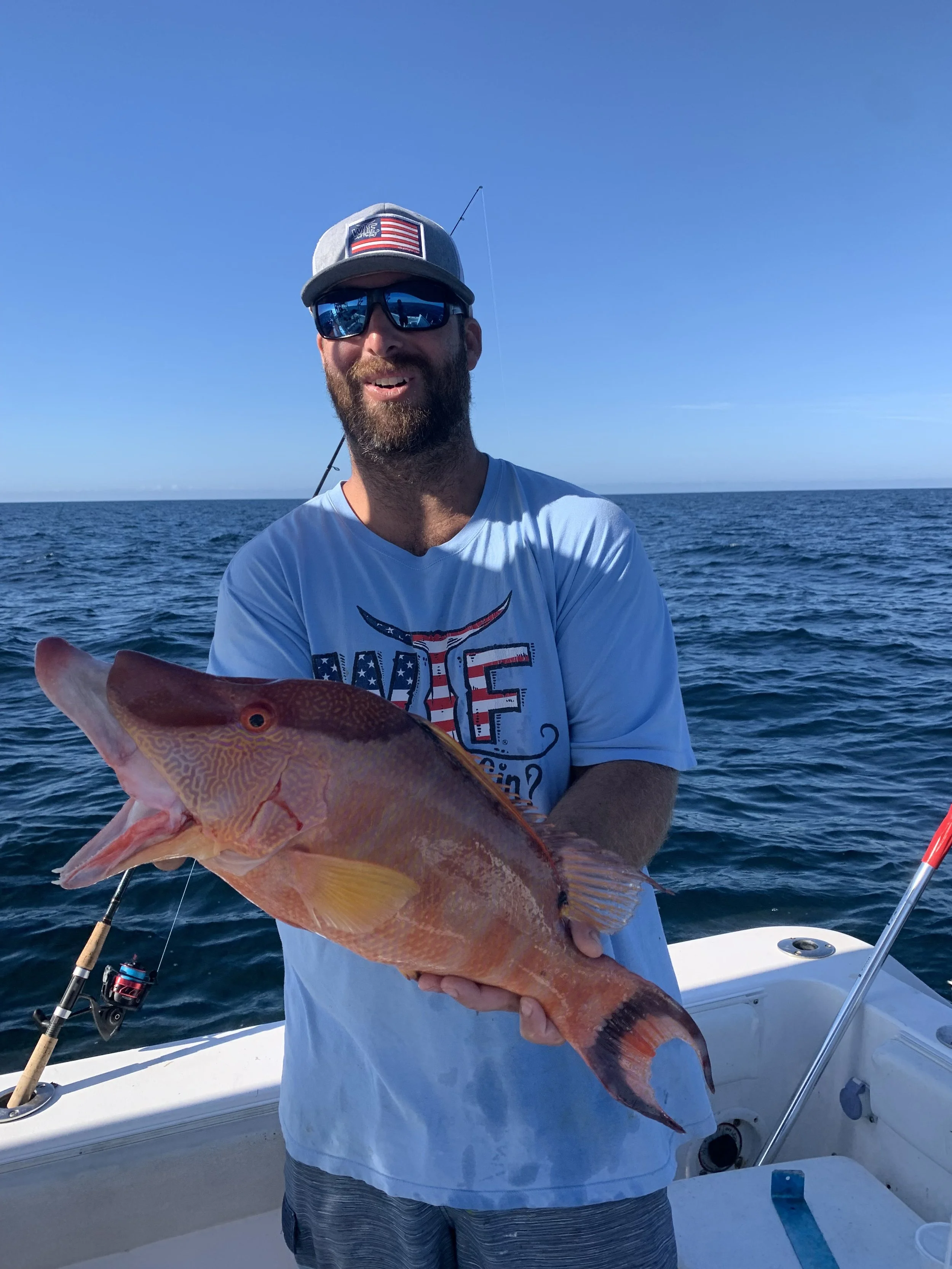 Winter Fishing is awesome right now. Species coming up Include Hogfish, Mangrove Snapper, Yellowtail Snapper, Porgys, Sheepshead, and Grunts. These fish are coming off ledgy hard bottom using shrimp on Knocker Rigs. On the Wrecks we are doing Catch and Release Amberjack with still an opportunity to catch that Goliath Grouper.